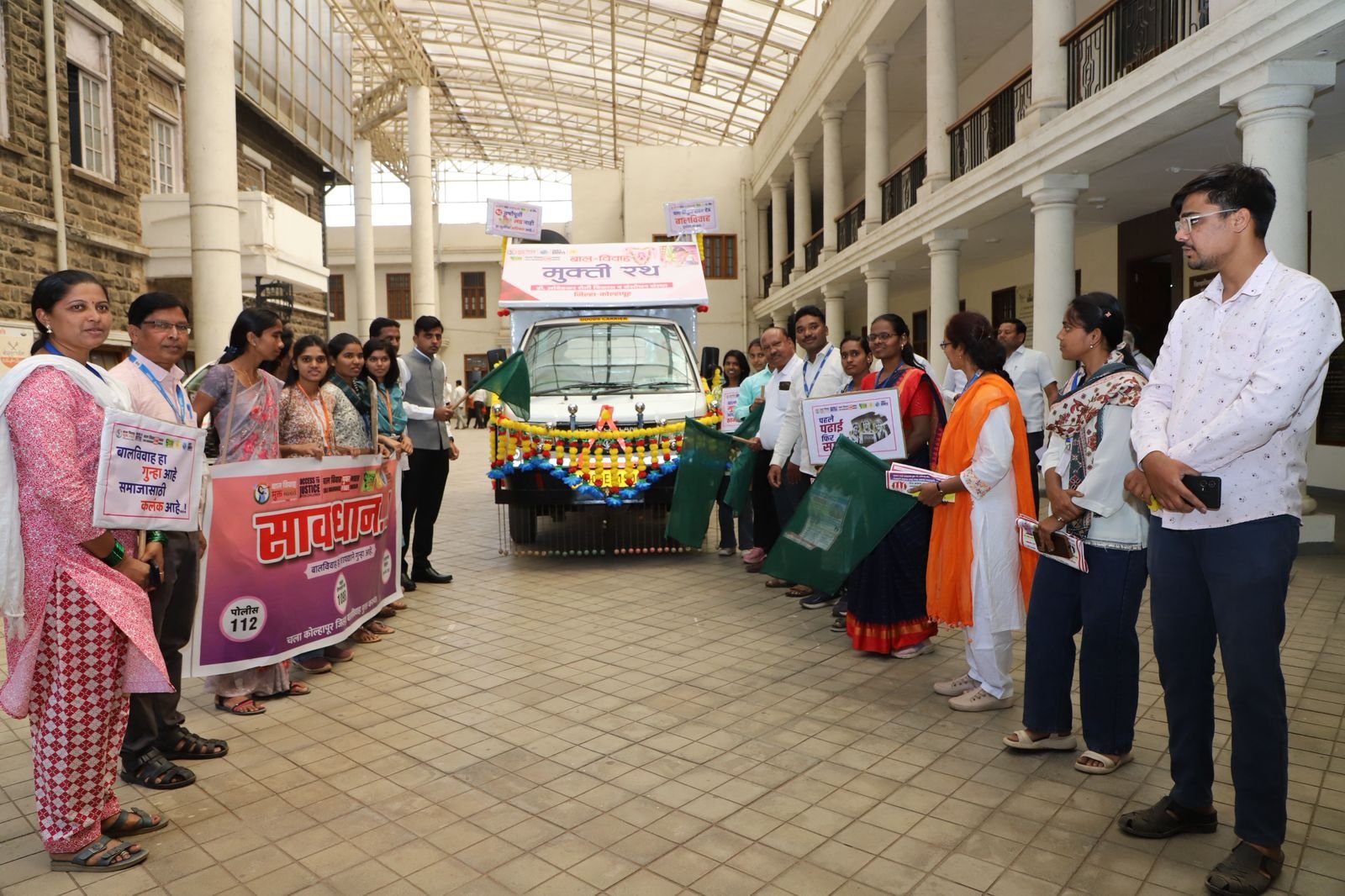 दि.१६: समाजातील बालविवाह ही एक गंभीर समस्या असून, तिच्या पूर्ण निर्मूलनासाठी जिल्हा प्रशासनाने ‘बालविवाह मुक्त जिल्हा’ बनवण्यासाठी विविध जनजागृती मोहिमेतून अभियानाला गती दिली आहे. या अंतर्गत ‘बालविवाह मुक्ती रथ’ डॉ.बाबासाहेब आंबेडकर शेती विकास व संशोधन संस्था, ‘जस्ट राईट्स फॉर चिल्ड्रन’, जिल्हा महिला व बालविकास विभाग आणि जिल्हा प्रशासन यांच्या संयुक्त विद्यमाने राबविण्यात येत आहे. जिल्हाधिकारी कार्यालयाच्या आवारात जिल्हाधिकारी अमोल येडगे यांच्या हस्ते हिरवा झेंडा दाखवून या रथाचा शुभारंभ करण्यात आला.