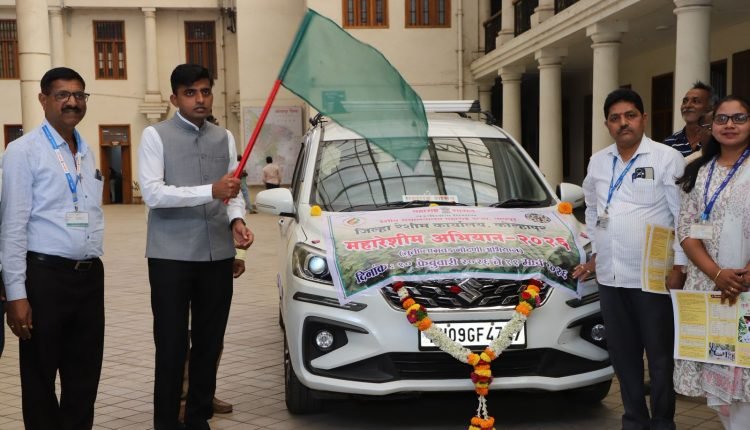 महारेशीम अभियानाचा जिल्हाधिकाऱ्यांच्या हस्ते हिरवा झेंडा दाखवून शुभारंभ