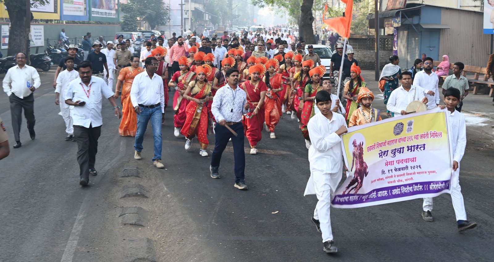दि.१९: अखंड महाराष्ट्राचे आराध्य दैवत छत्रपती शिवाजी महाराज यांच्या जयंतीनिमित्त आज सांगली जिल्हा प्रशासनाच्या वतीने ‘रयतेच्या राजाला’ आगळ्यावेगळ्या पद्धतीने मानाचा मुजरा करण्यात आला. जिल्हा परिषद ते मारुती चौक या मार्गावर काढण्यात आलेल्या भव्य ‘मेगा पदयात्रे’ने सांगली नगरी शिवमय झाली होती. “जय शिवाजी, जय भवानी” अशा घोषणा आणि लेझीमच्या तालावर निघालेल्या या पदयात्रेत प्रशासकीय अधिकारी, कर्मचारी आणि विद्यार्थी मोठ्या संख्येने सहभागी झाले होते.